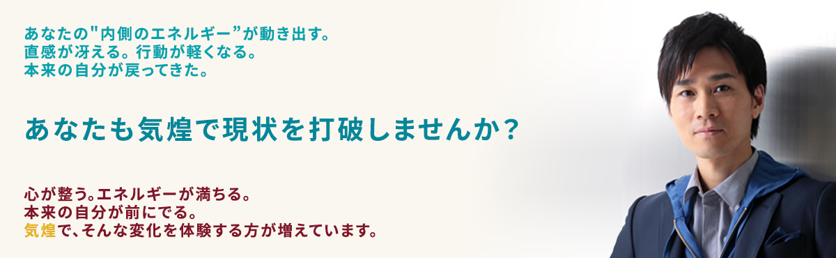 「気煌」とは、古代中国で生まれたエネルギーのコントロール方法「気功」に独自の気の活用方法を加えて体系化した、エネルギー運用メソッドです。思考・感情・行動に影響する内的プロセスを整えることで、本来の自分らしさが自然と発揮されやすい状態をつくり出します。